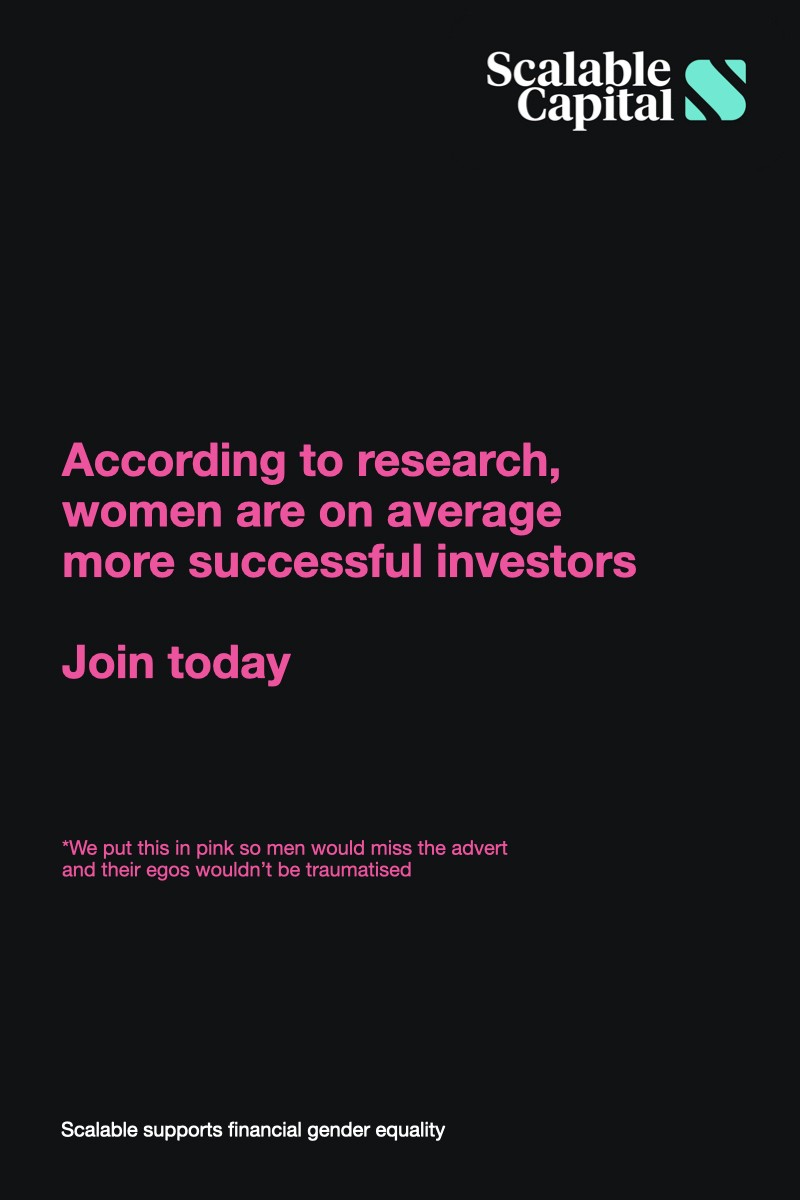 As a woman who invests, who actively encourages her friends (who are not yet) to invest, who is interested in improving financial literacy and who is also a Scalable Capital client, my attention was drawn to Scalable Capital's latest campaign aimed at women.