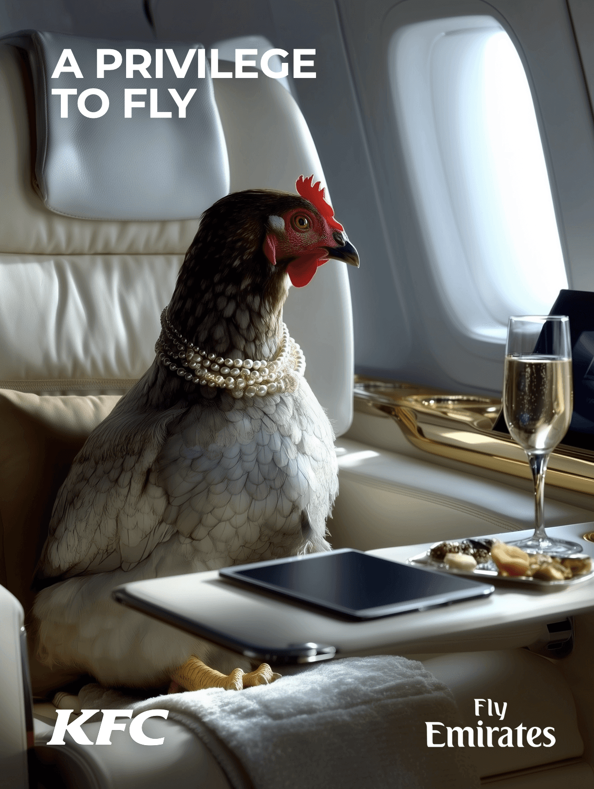 The hardest part was to accompany these 'partnership' with proper taglines, because they are really absurd. My favourite one is for combination of Emirates and KFC. The chicken that has been the protagonist of recent, quite mind-blowing, KFC campaigns by Mother agency can now fly in comfort.